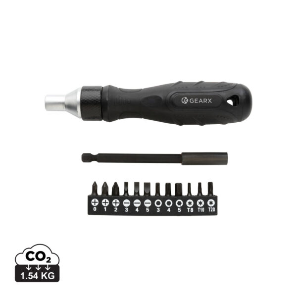 Lyxig spärrskruvmejsel med skaft och bits i S2 legerat stål. Setet innehåller följande bits: PH0/PH1/PH2,SL3/SL4/SL5/HEX3/HEX4/HEX5/TX8/TX10/TX20. Enkla att fästa med en extra stark magnet. Levereras i giftbox. Hårdhet för bits 60-62 HRC.
